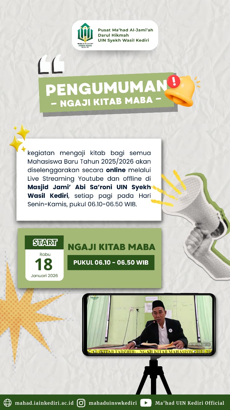 Read More Pemberitahuan Ngaji Kitab Mahasiswa Baru Semester Genap 2025-2026 (KLIK DISINI) Pemberitahuan Ngaji Kitab Mahasiswa Baru Semester Genap 2025-2026